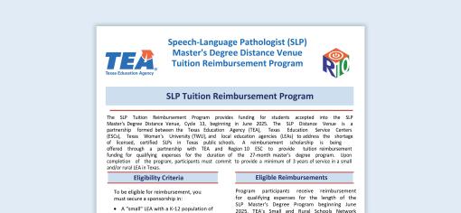 Explore opportunities designed to help Texas school systems grow and sustain a strong pipeline of qualified special education professionals. Explore grant opportunities, certification and licensing support, skill-building courses, and recruitment tools tailored to meet the needs of districts, campuses, and educators working in high-need areas.