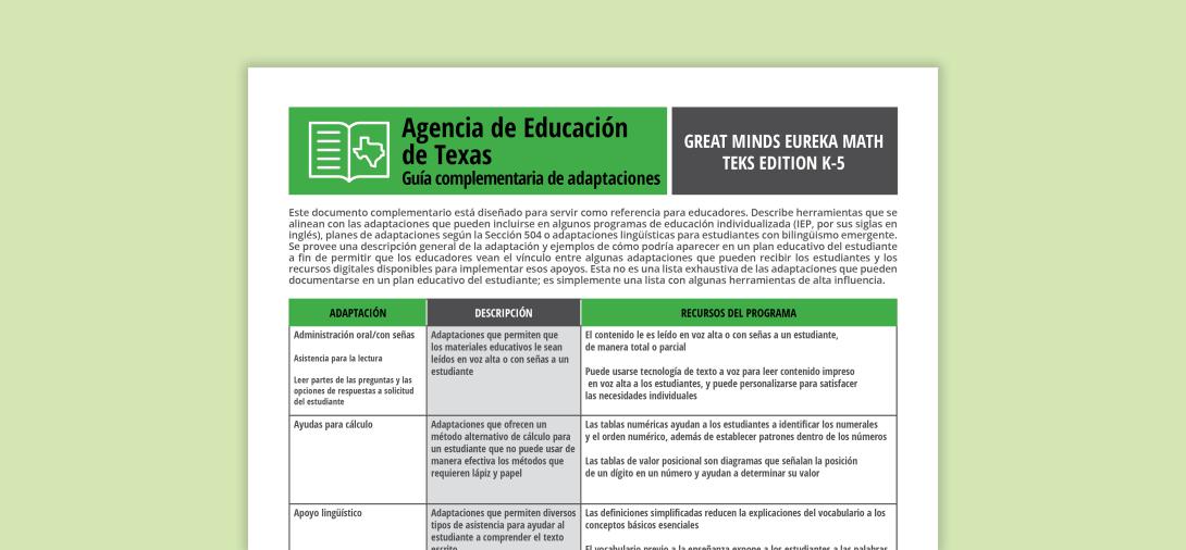 Eureka Math TEKS Edition K-5 Guía Complementaria de Adaptaciones