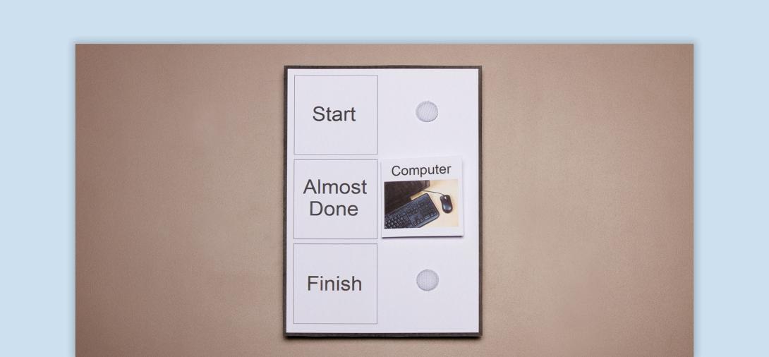 - When appropriate, move the icon to “Almost Done”. Be sure the student can see the cue card. Tell them approximately how much time is left for this task or activity.