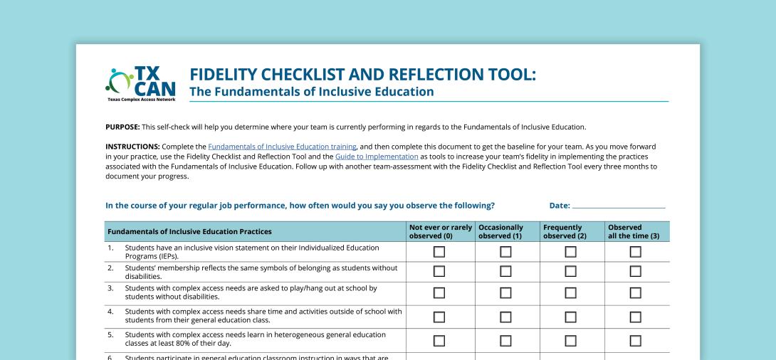 Fidelity Checklist and Reflection Tool: The Fundamentals of Inclusive Education
