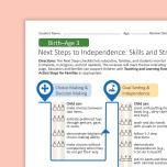 Texas SPED Support offers the Next Steps to Independence: Skills and Strategies document. The Next Steps checklist focuses on specific skill areas that help predict postsecondary success for learners from birth to 22 years old.