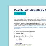 This month’s focus is on improving student supports. The content aligns with Quality Indicator III: Classroom Climate, Quality Indicator IV: Differentiated Instruction, and Quality Indicator V: Social Communication on the Rubric of Effective Practices for Students with Complex Access Needs and the Administrator Companion Document to the Rubric of Effective Practices for Students with Complex Access Needs. This month you will focus on problem-solving to improve the effectiveness of the supports you use with your students. Download or print the March Monthly Instructional Guide Checklist for your reference.