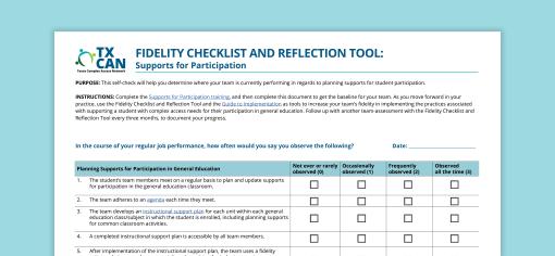 Guide to Implementation for Planning Supports for Participation
